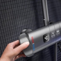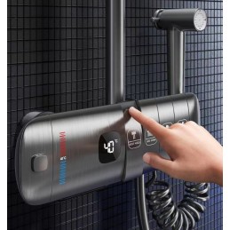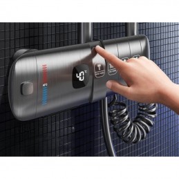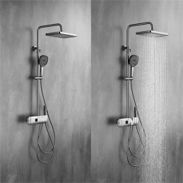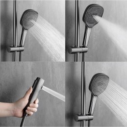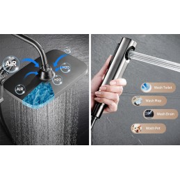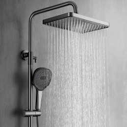 Sistemul de duș A20 este conceput pentru a oferi durabilitate și funcționalitate superioare. Corpul său robust din alamă solidă garantează o rezistență excelentă la uzură și coroziune, iar duzele din silicon anticalcar previn depunerile, asigurând performanță pe termen lung.