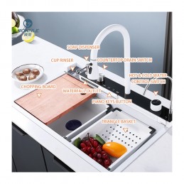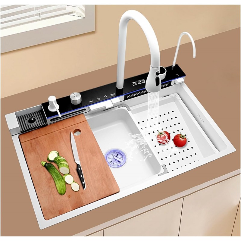 Chiuveta A11 Alb redefinește stilul modern în bucătărie, combinând un design sofisticat cu funcționalități inteligente. Fabricată din oțel inoxidabil premium SUS304, asigură durabilitate excepțională, fiind rezistentă la zgârieturi și uzură.