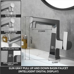 Baterie Lavoar cu Ecran Digital A04, Gri, 3 Moduri de Spălare