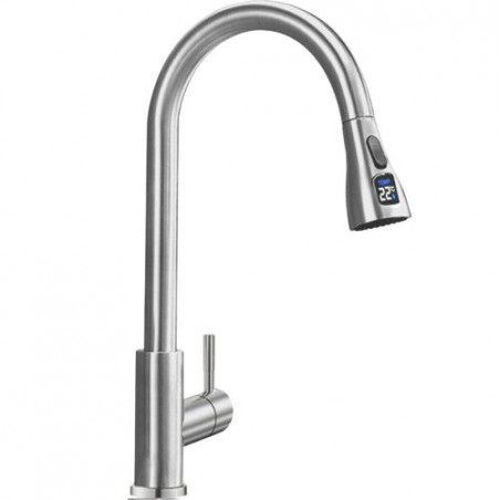 Acest robinet elegant este echipat cu un afișaj digital integrat ce indică temperatura apei în timp real, fără a necesita energie electrică sau baterii. Tehnologia inovativă folosește o turbină internă care generează electricitate în momentul în care apa curge, pentru a alimenta ecranul ce afișează temperatura.