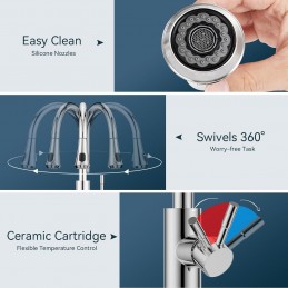 Rotire 360°: Mecanismul rotativ permite gura de scurgere să se miște în jurul chiuvetei, asigurând o înălțime suficientă pentru a umple vase mari.