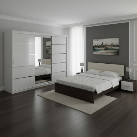 Dormitor Alb Diego Cu Pat Inno Tapitat Alb 160x200
